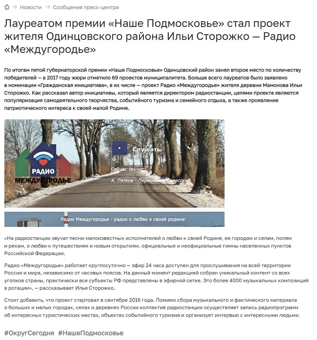 Мы открыты к сотрудничеству с неравнодушными людьми. Если вы написали краеведческую (и не только) книгу, проводите экскурсии, участвуете в жизни своего села/города/края, готовы поделиться интересными знаниями, вы можете стать автором и ведущим передачи на радио «Междугородье». Для этого совершенно не обязательно иметь за плечами дикторские курсы и горы звукозаписывающего оборудования. Напишите нам о себе на электронную почту или в телеграмм.